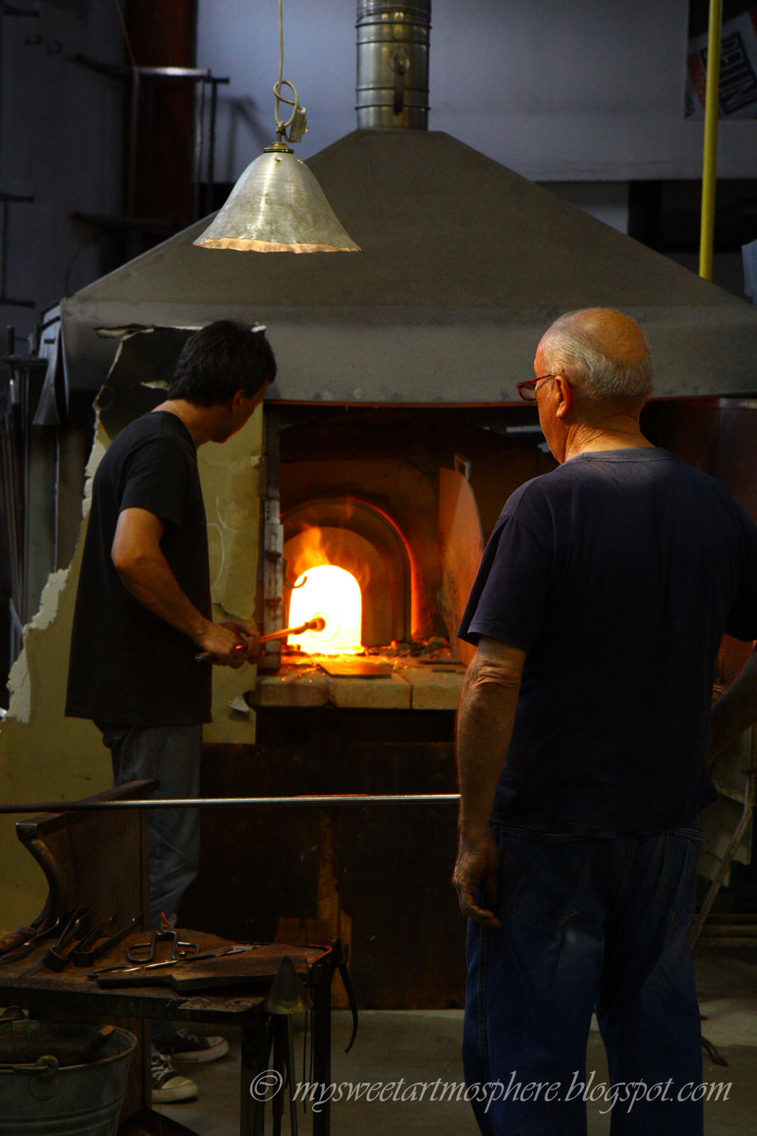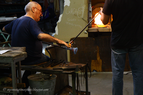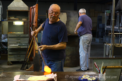 So, this time I visited two more islands of Venice: Murano and Burano. Murano or the "Glassmaker's Paradise" as it called, is a tiny Venetian island which has been the home of Venice's glassmaking industry since 1291. Murano glass is made from silica, which becomes liquid at high temperatures. As the glass passes from a liquid to a solid state, there is an interval wherein the glass is soft before it hardens completely. This is when the glass-master can shape the material. [Έτσι, αυτή τη φορά θα σας περιγράψω την εμπειρία μου στα νησιά: Μουράνο και Μπουράνο. Το Μουράνο ή αλλιώς "Ο παράδεισος των τεχνιτών γυαλιού", είναι ένα μικροσκοπικό νησί της λιμνοθάλασσας της Βενετίας, που αποτέλεσε το σπίτι της βιομηχανίας γυαλιού από το 1291. Το φυσητό γυαλί του Μουράνο, είναι φτιαγμένο από πυρίτιο, που υγροποιείται σε υψηλές θερμοκρασίες. Μέχρι να στερεοποιηθεί, μπορεί να μεταβάλλει το σχήμα του, στο σχήμα που επιθυμούν οι τεχνίτες. Στις φωτογραφίες που ακολουθούν, μπορείτε να δείτε πως.]
