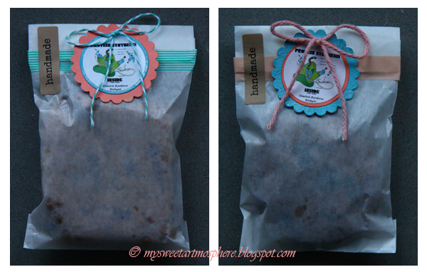 Όπως κάθε χρόνο, έτσι και φέτος, έφτιαξα τα γλυκάκια - κέρασμα του άντρα μου, για την δουλειά του! Αυτή τη φορά μάλιστα, αποφάσισα πως είναι καλύτερο να τα βάλω σε ατομικά σακουλάκια (για λόγους αισθητικής αλλά και υγιεινής). Για να είναι ταυτόχρονα και όμορφα, (αφού κύριοι παραλήπτες είναι παιδιά - καθώς ο άντρας μου είναι βιολόγος), τα στόλισα με αυτά τα καρτελάκια, στα οποία κόλλησα αυτοκόλλητα με εικόνες που σχετίζονται με το επάγγελμά του. Έφτιαξα 50 ατομικά κεράσματα, 6 διαφορετικά γλυκά μοιρασμένα σε δύο κούτες, μέσα σε δυο μέρες! Το αποτέλεσμα πάντως πιστεύω πως άξιζε όλη αυτήν την προετοιμασία!